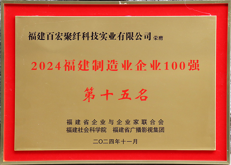 • 百宏聚纖公司榮登 “福建首屆品牌價值百強”榜單